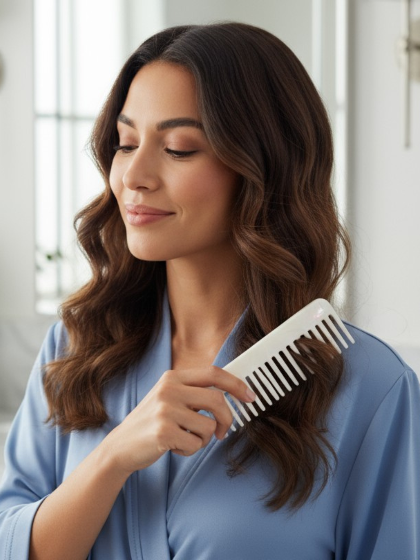 Dieser luxuriöse Kamm aus hochwertigem Acetat vereint elegantes Design mit maximaler Pflege. Die breiten Zinken gleiten mühelos durch das Haar – ideal zum sanften Entwirren nach dem Waschen oder zum gleichmäßigen Verteilen von Pflegeprodukten. Perfekt für alle Haartypen und ein Must-Have für deine tägliche Haircare-Routine.