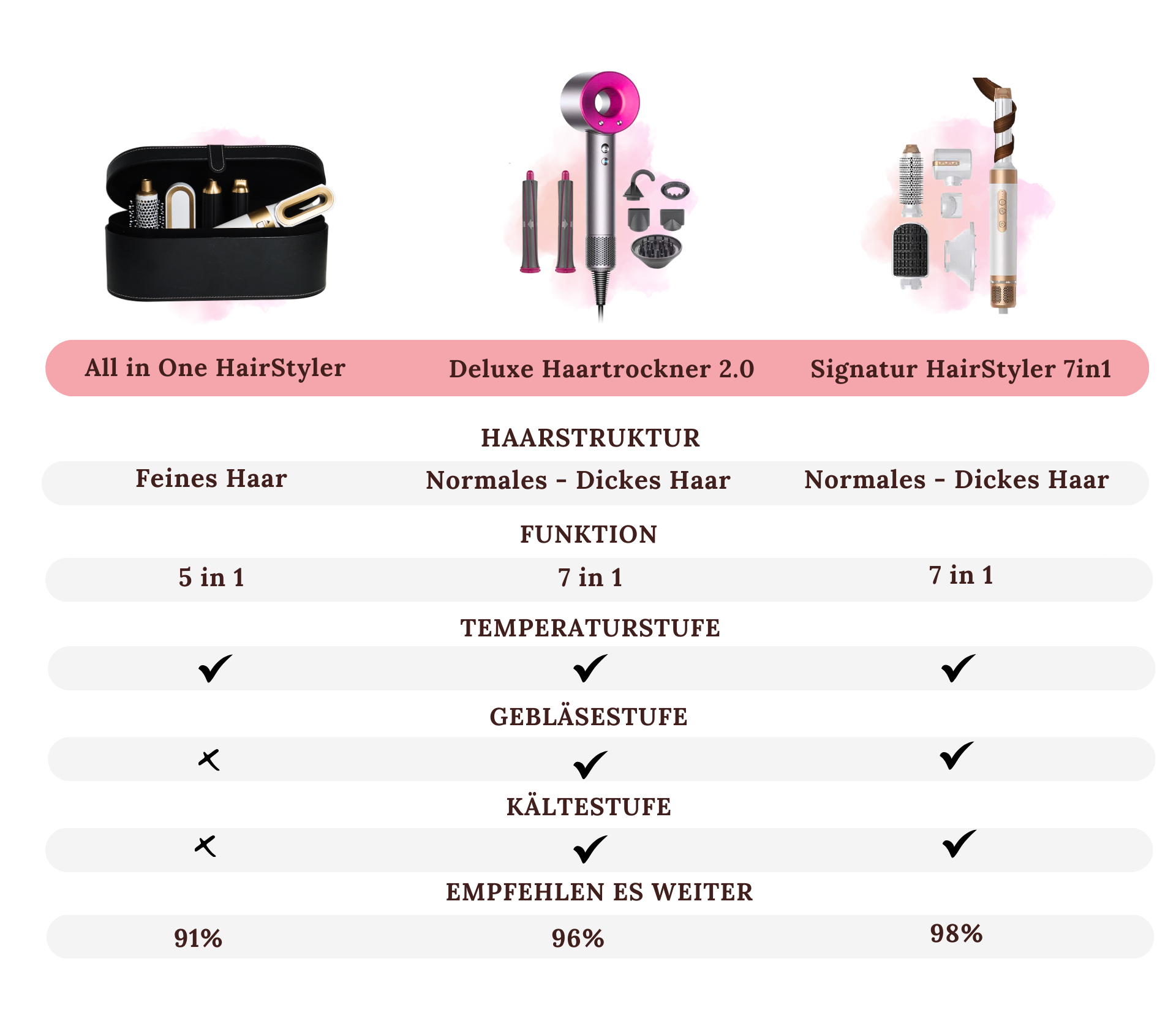 Verpasse nicht die Chance, deine Styling-Routine zu revolutionieren und Zeit und Platz zu sparen. Mit seinen vielseitigen Funktionen ist es der perfekte Begleiter für jede Frau, die Wert auf ein gepflegtes und gestyltes Aussehen legt. Beeile dich, da die Nachfrage hoch ist und die Verfügbarkeit begrenzt ist. Sichern dir deinen All-in-One Hairstyler und genieße professionelle Ergebnisse bequem zu Hause.